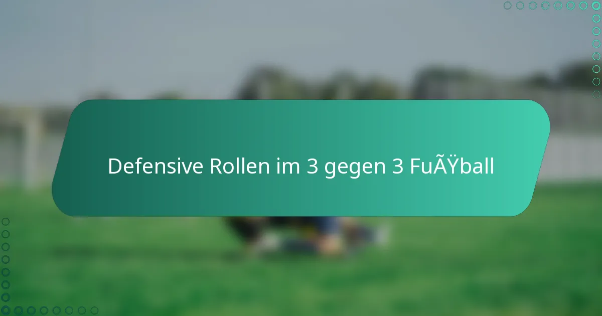 Im 3-gegen-3-Fußball sind defensive Rollen entscheidend für die Aufrechterhaltung der Teamstruktur und die Verhinderung von Toren. Jeder Spieler, einschließlich des Verteidigers, Torwarts und der Mittelfeldspieler, hat spezifische Verantwortlichkeiten, die zur allgemeinen defensiven Effektivität beitragen. Aufgrund der begrenzten Anzahl an Spielern müssen die Teams einzigartige Strategien anwenden, um eine solide Verteidigung zu gewährleisten und gleichzeitig bereit für schnelle Übergänge zu sein.